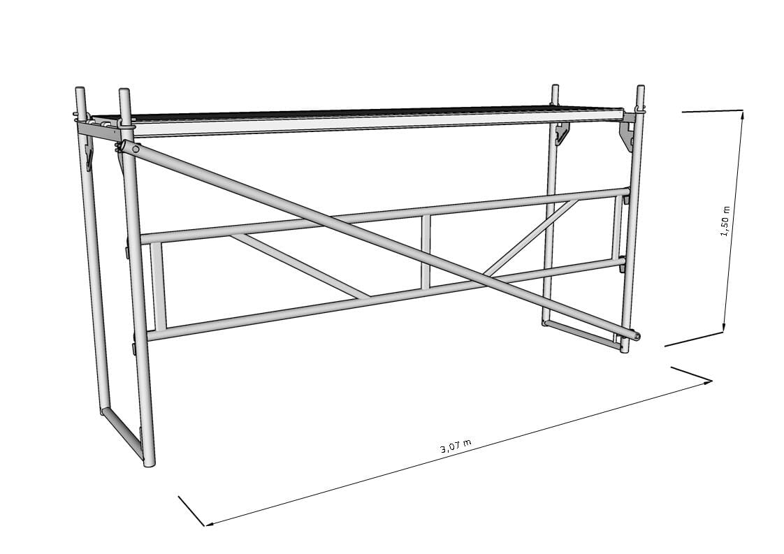 Påbyggingspakke 11 - 1,5 m høyde leveres komplett med alle monteringsdetaljer som trengs for å bygge på 1 etasje (1,5 høydemeter) på en stillaspakke som er en faglengde (3,07m) lang. Hovedkomponenter slik som rammer og rekkverk er fremstilt av aluminium og stillasgulv leveres med lettvekts kompositt, eller aluminium.
