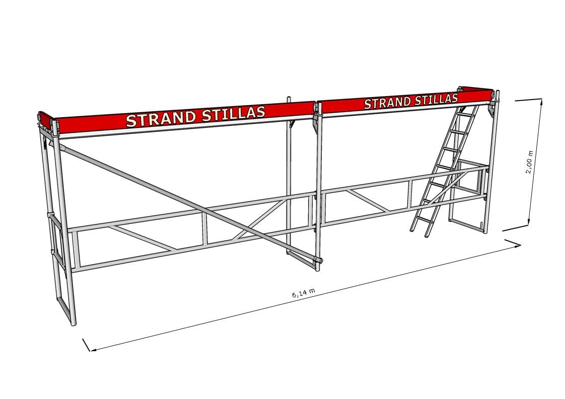 Påbyggingspakke 12 - 2,0 m høyde leveres komplett med alle monteringsdetaljer som trengs for å bygge på 1 etasje (2 høydemeter) på en stillaspakke som er to faglengder (6,14m) lang. Hovedkomponenter slik som rammer og rekkverk er fremstilt av aluminium og stillasgulv leveres med lettvekts kompositt, eller aluminium.