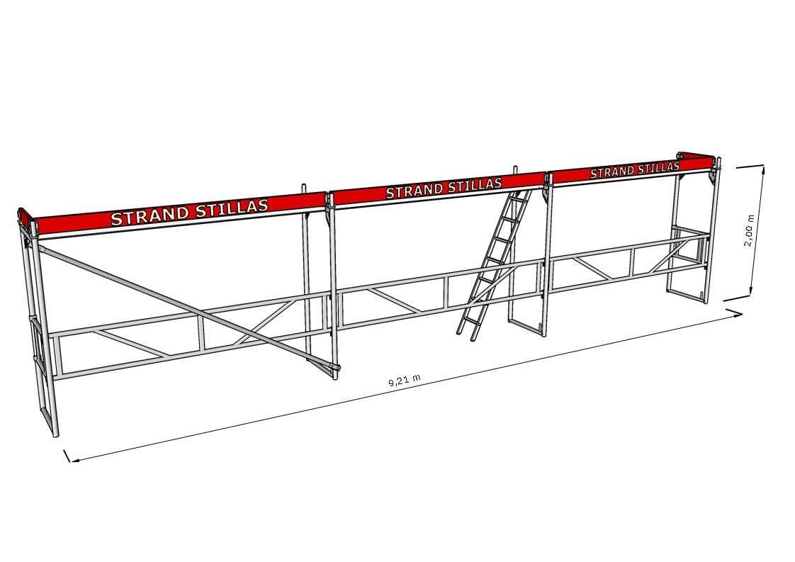 Påbyggingspakke 13 - 2,0 m høyde leveres komplett med alle monteringsdetaljer som trengs for å bygge på 1 etasje (2 høydemeter) på en stillaspakke som er tre faglengder (9,21m) lang. Hovedkomponenter slik som rammer og rekkverk er fremstilt av aluminium og stillasgulv leveres med lettvekts kompositt, eller aluminium.