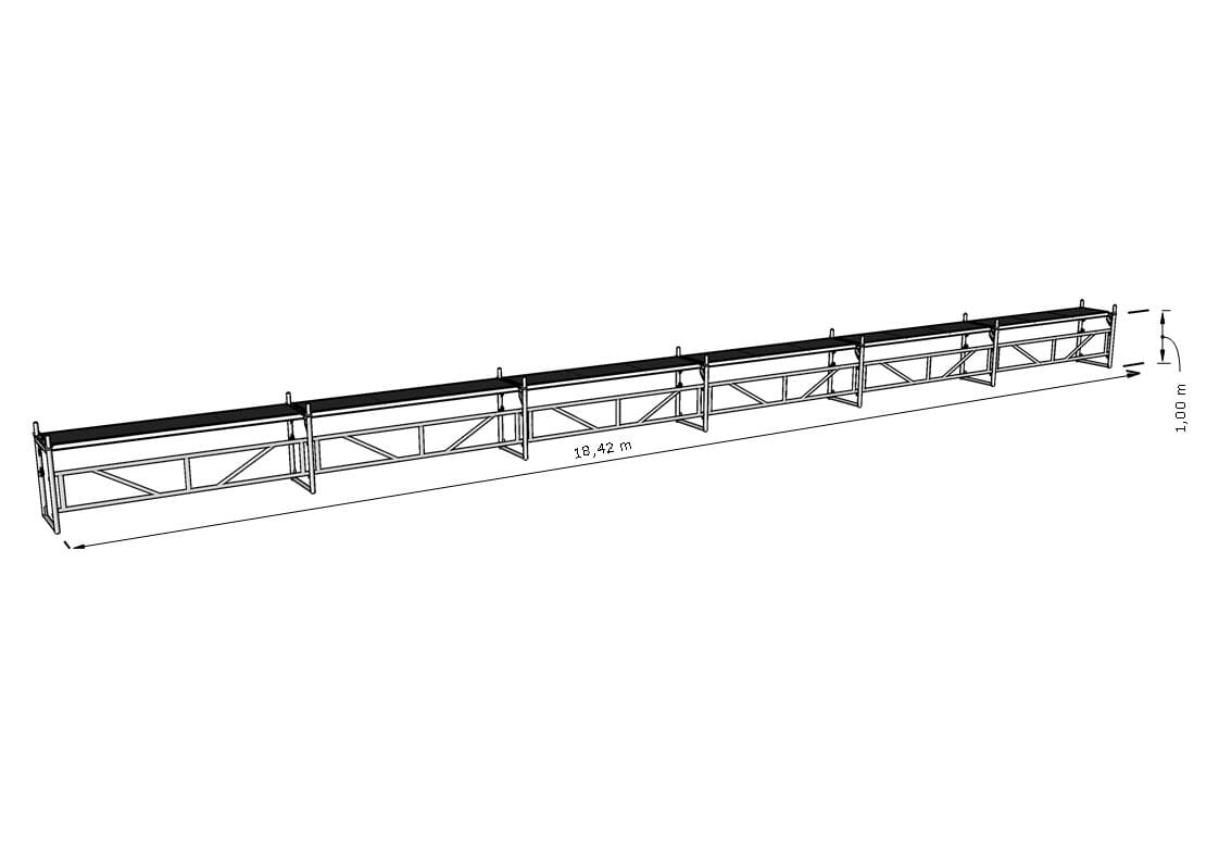 Påbyggingspakke 16 - 1,0 m høyde leveres komplett med alle monteringsdetaljer som trengs for å bygge på 1 etasje (1,0 høydemeter) på en stillaspakke som er seks faglengder (18,42m) lang. Hovedkomponenter slik som rammer og rekkverk er fremstilt av aluminium og stillasgulv leveres med lettvekts kompositt, eller aluminium.