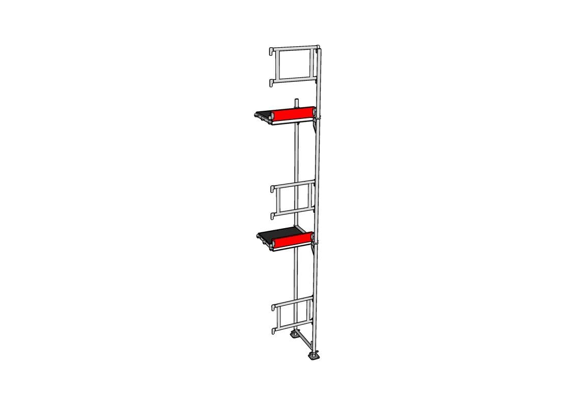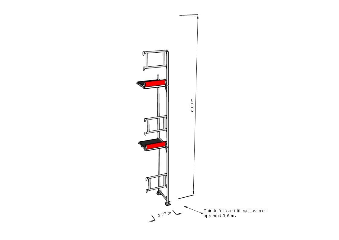 Påbyggingspakke 21 - 0,73 m leveres komplett med alle monteringsdeler som trengs for å bygge påbyggingsstillaset som avbildet. Hovedkomponenter slik som rammer og rekkverk er fremstilt av aluminium, og stillasgulv leveres med lettvekts kompositt eller aluminium.