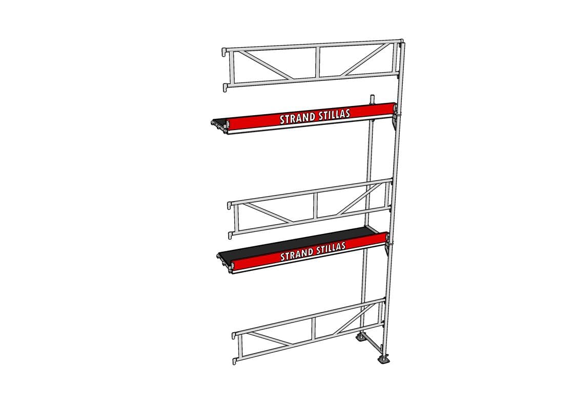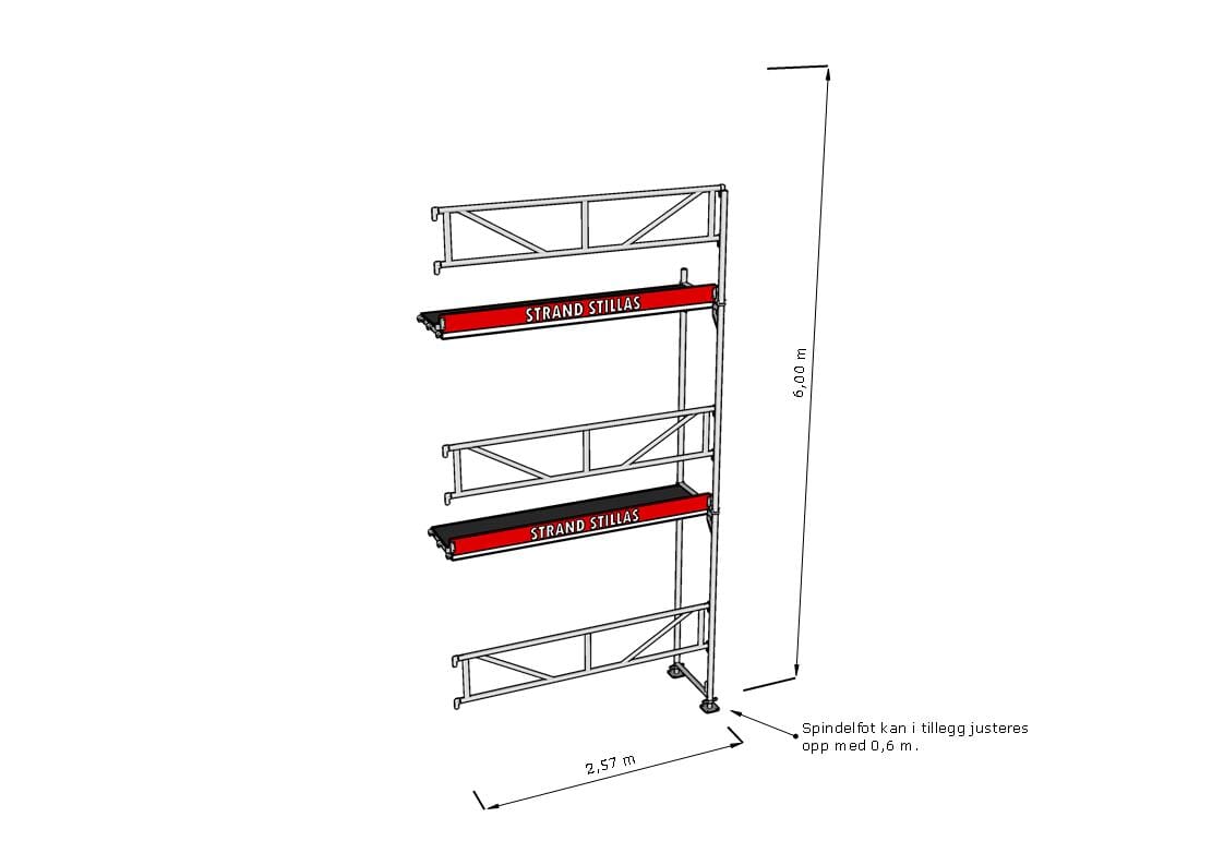 Påbyggingspakke 21 - 2,57 m leveres komplett med alle monteringsdeler som trengs for å bygge påbyggingsstilaset som avbildet. Hovedkomponenter slik som rammer og rekkverk er fremstilt av aluminium, og stillasgulv leveres med lettvekts kompositt eller aluminium.