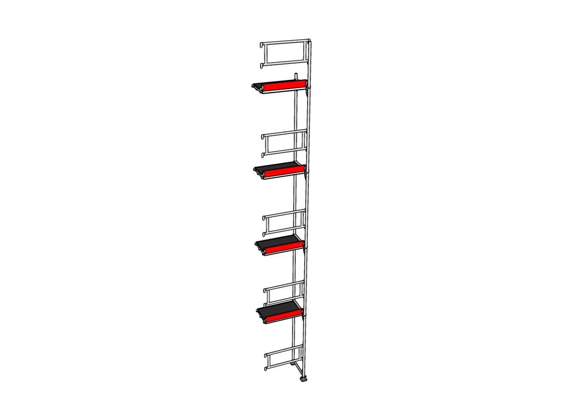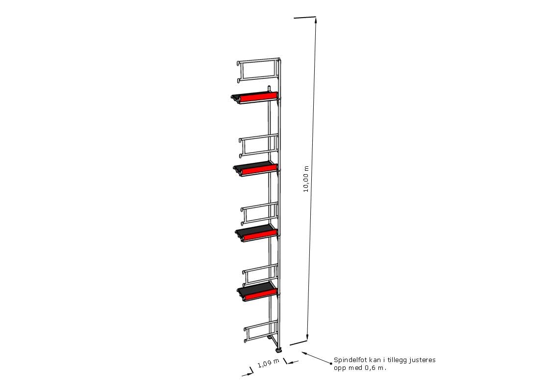Påbyggingspakke 41 - 1,09 m leveres komplett med alle monteringsdeler som trengs for å bygge påbyggingsstillaset som avbildet. Hovedkomponenter slik som rammer og rekkverk er fremstilt av aluminium, og stillasgulv leveres med lettvekts kompositt eller aluminium.
