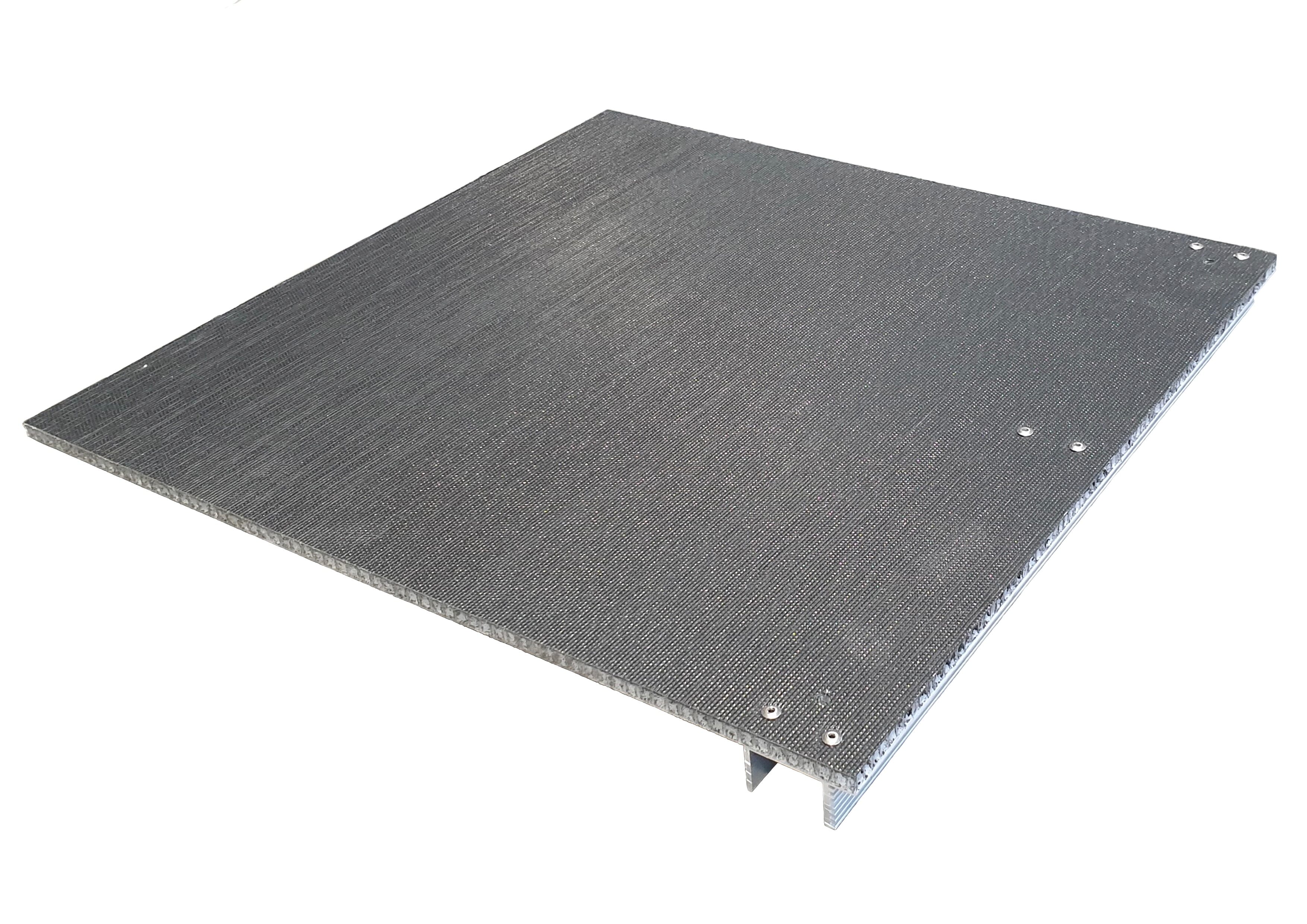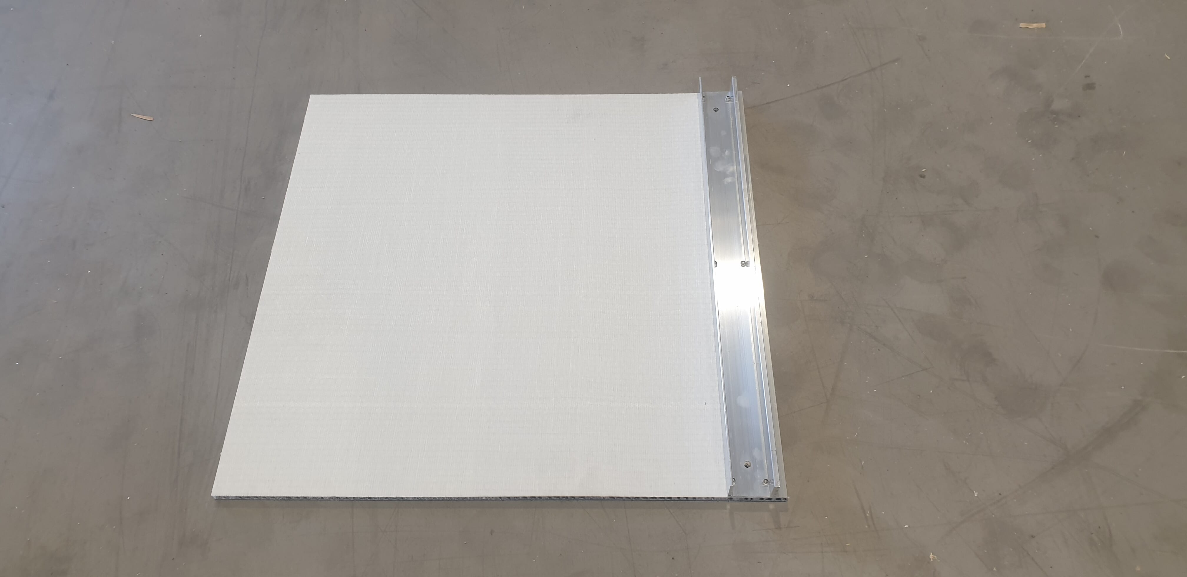 Overlappsgulv brukes på hjørnene mellom stillasene. Profilen på undersiden låser seg i låselist på ramme/rekkverkstøtte når den blir montert.