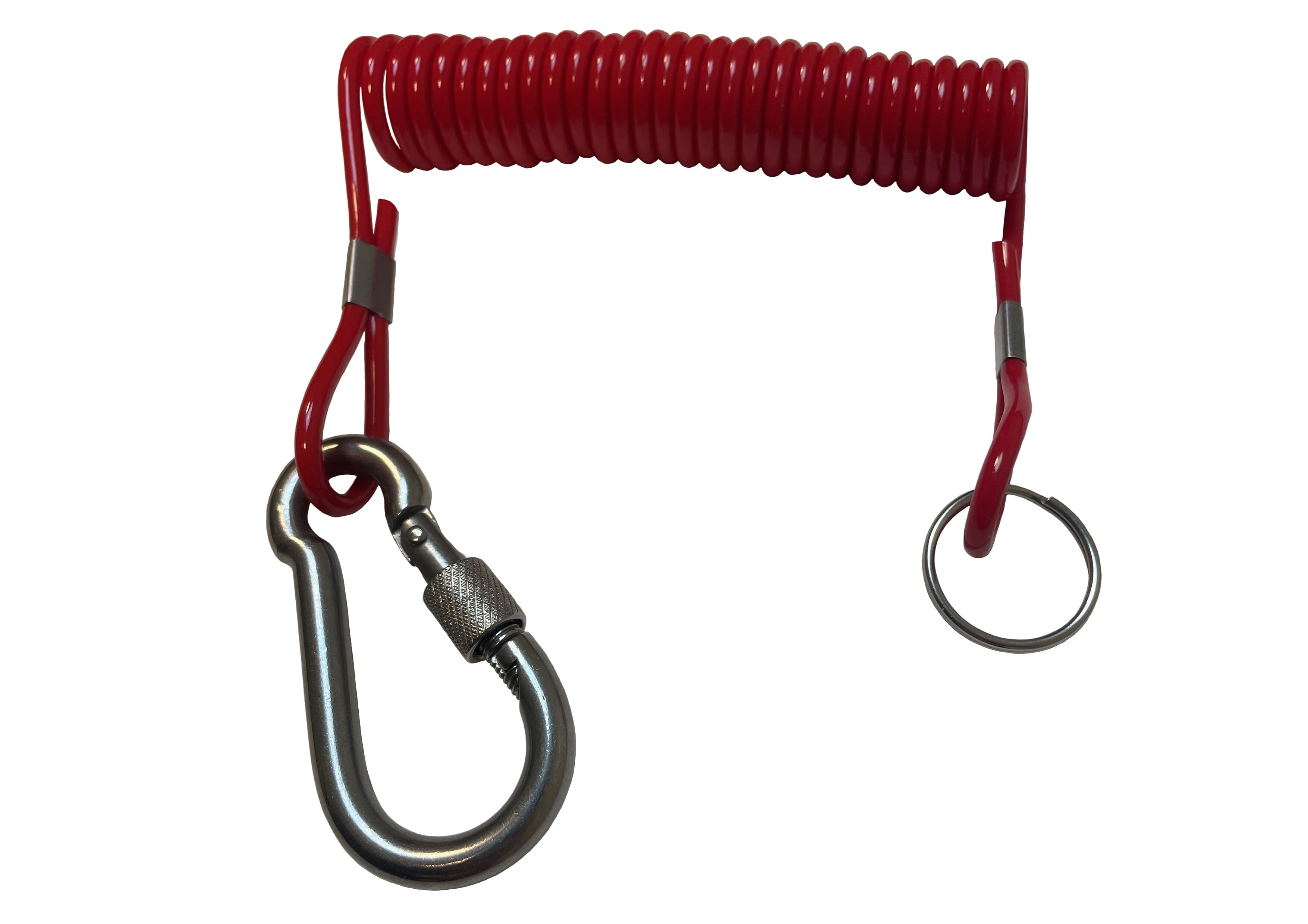 Sikkerhetsline (verktøysikring) til sikring av for eksempel verktøy. Sikkerhetsline kobles mellom festepunkt på kropp, sele, belte eller fast struktur, og på verktøyfeste. Dette for å sikre at hvis verktøyet glipper, så faller det ikke ned. Krok og ring i rustfritt stål A4. Plastwire, lengde 36 cm - 185cm.