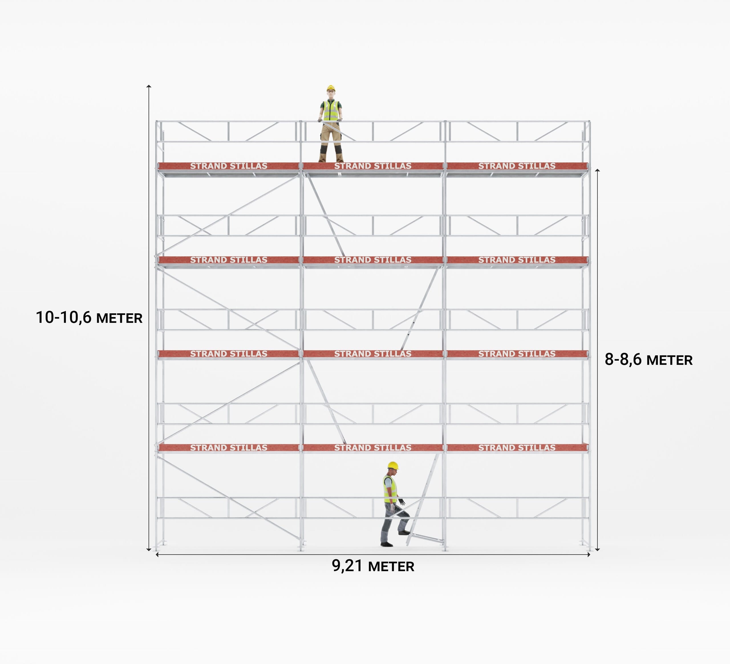 Øverste stillasgulv : 8,0 - 8,6 m