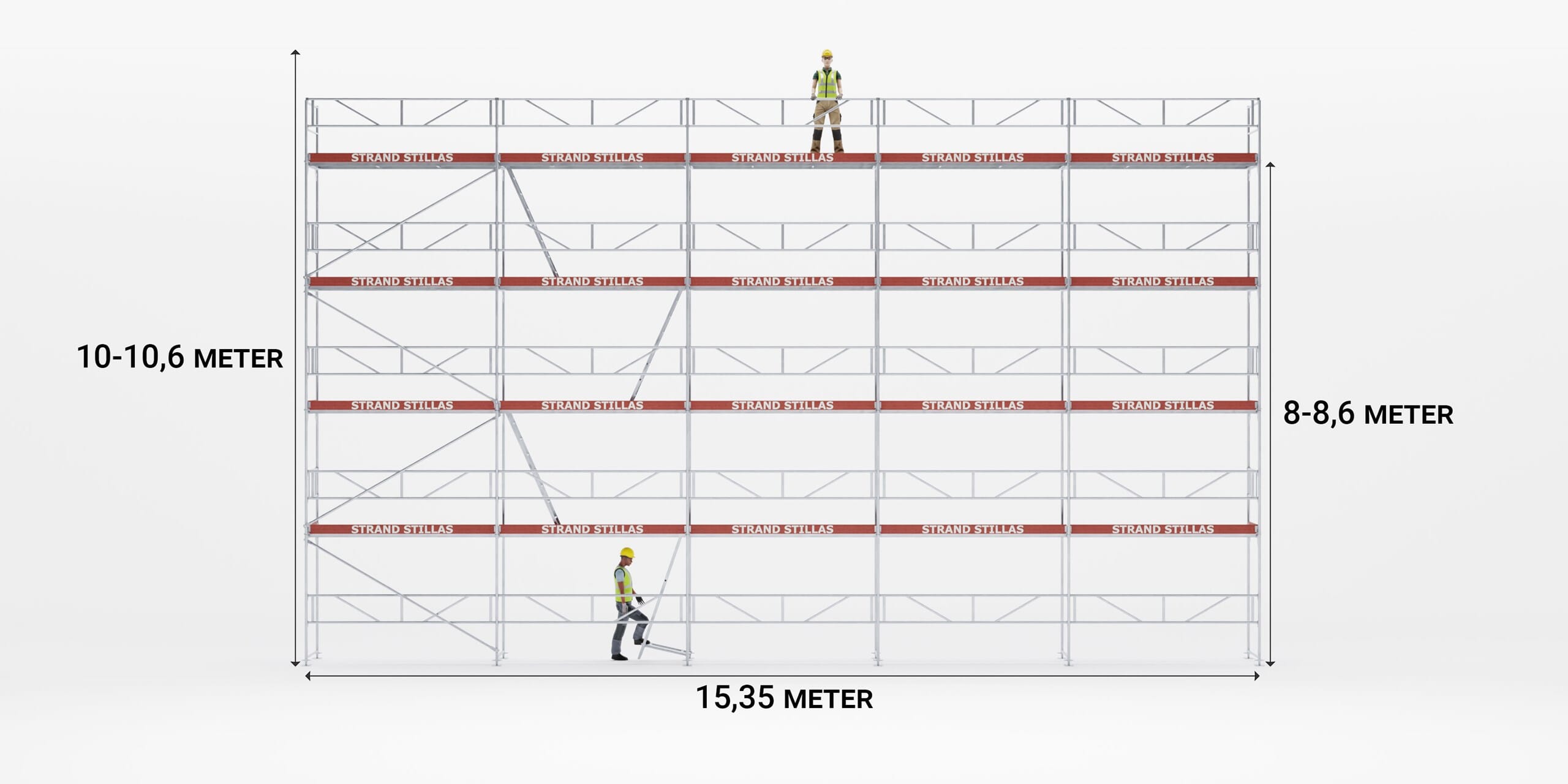 Øverste stillasgulv : 8,0 - 8,6 m