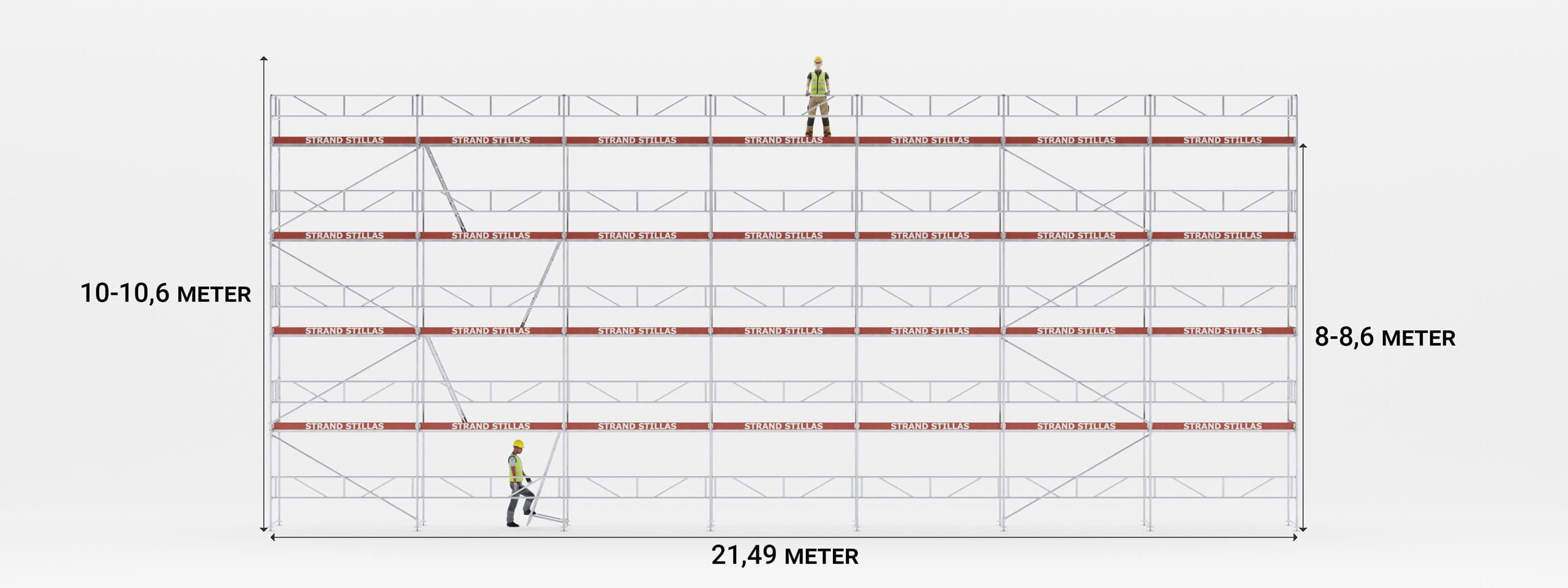 Stillaspakke 47 leveres komplett med alle monteringsdeler som trengs for å bygge stillaset som avbildet. Stillaset kan også bygges lavere dersom det er ønskelig. Hovedkomponenter slik som rammer og rekkverk er fremstilt av aluminium, og stillasgulv leveres med lettvekts kompositt eller aluminium. Dersom det er behov for tilleggsdeler, finner man det under fanen «Stillasdeler» i menyen.