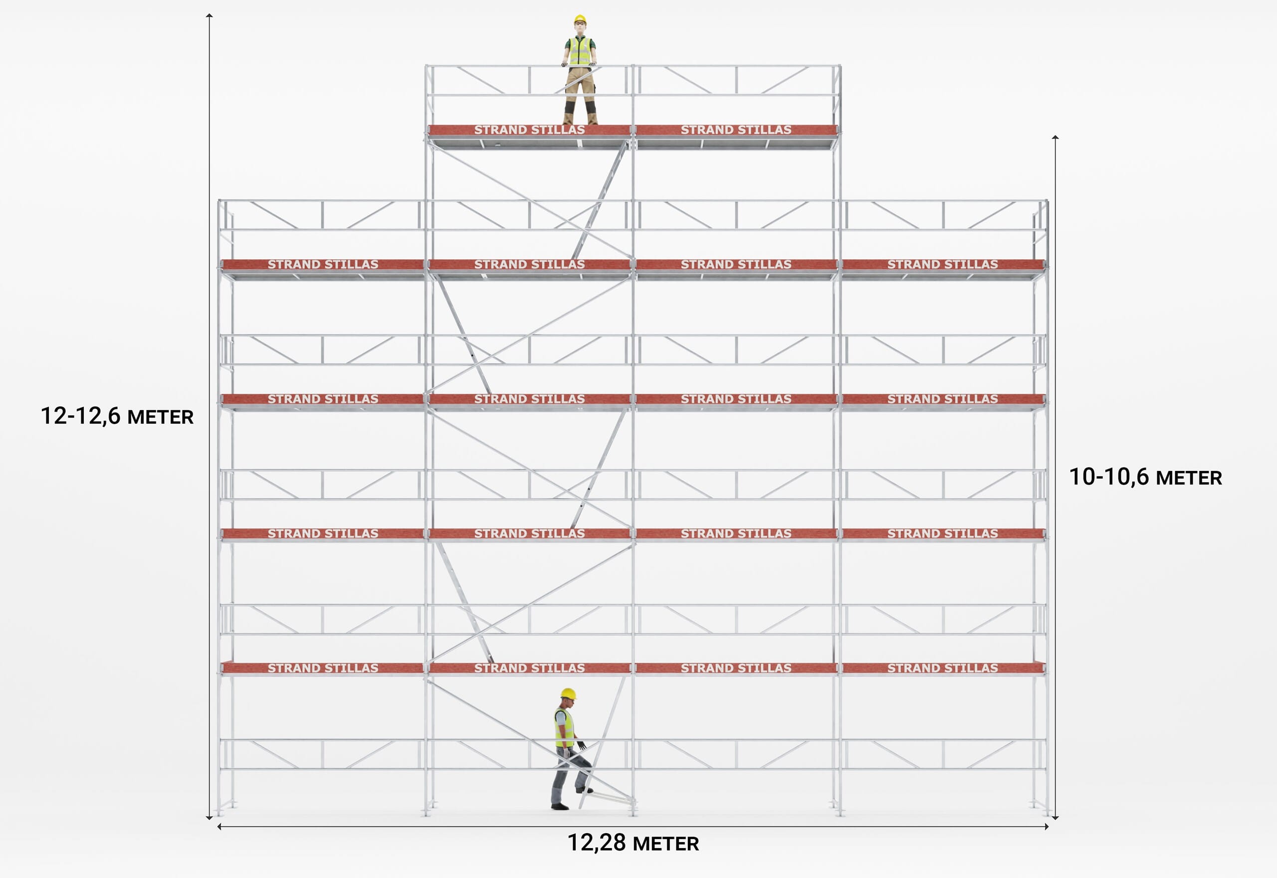 Stillaspakke Gavl 44 leveres komplett med alle monteringsdeler som trengs for å bygge stillaset som avbildet. Gavl 44 er tilpasset høye hus, låvebygninger etc. Stillaset kan også bygges lavere dersom det er ønskelig. Hovedkomponenter slik som rammer og rekkverk er fremstilt av aluminium, og stillasgulv leveres med lettvekts kompositt eller aluminium. Dersom det er behov for tilleggsdeler, finner man det under fanen «Stillasdeler» i menyen.