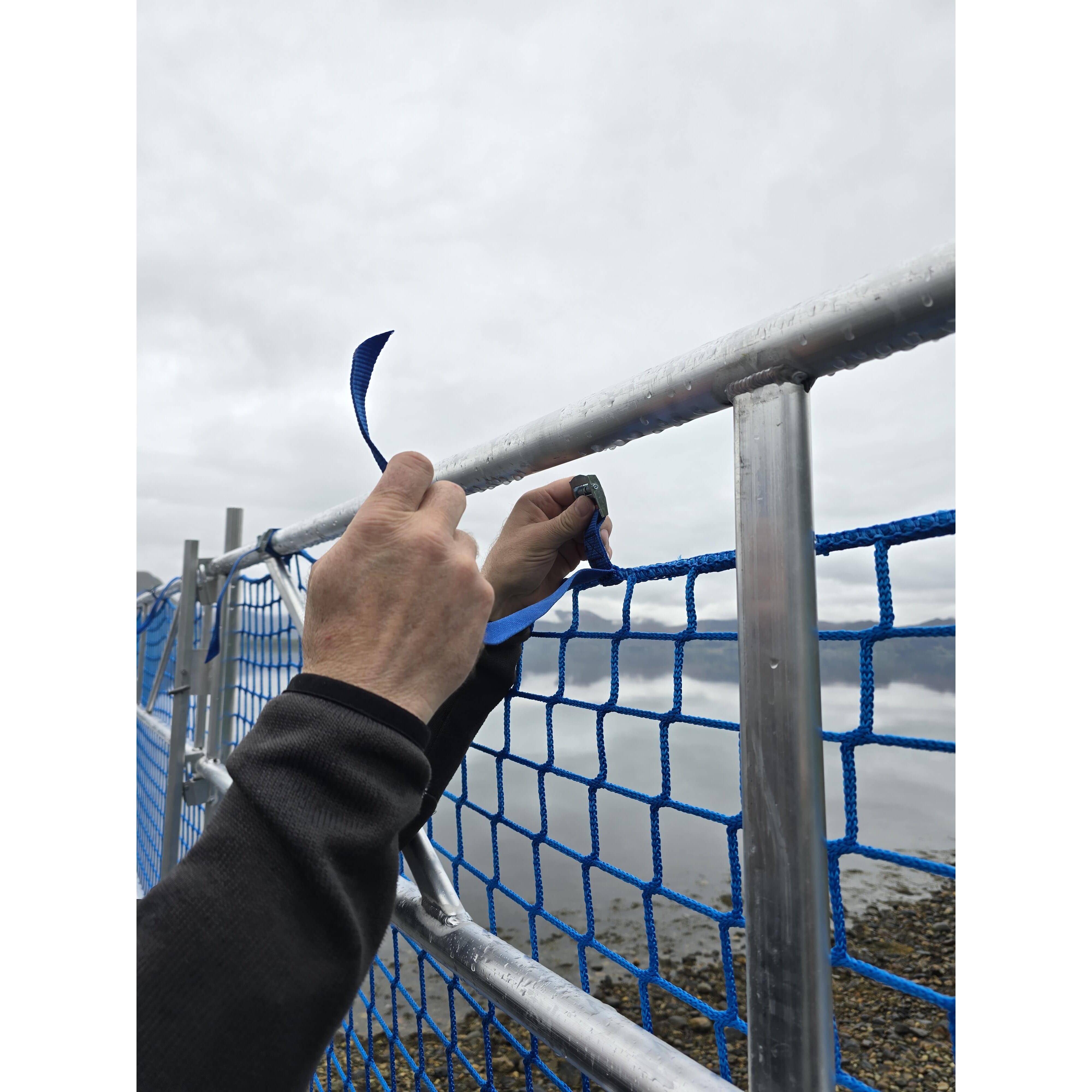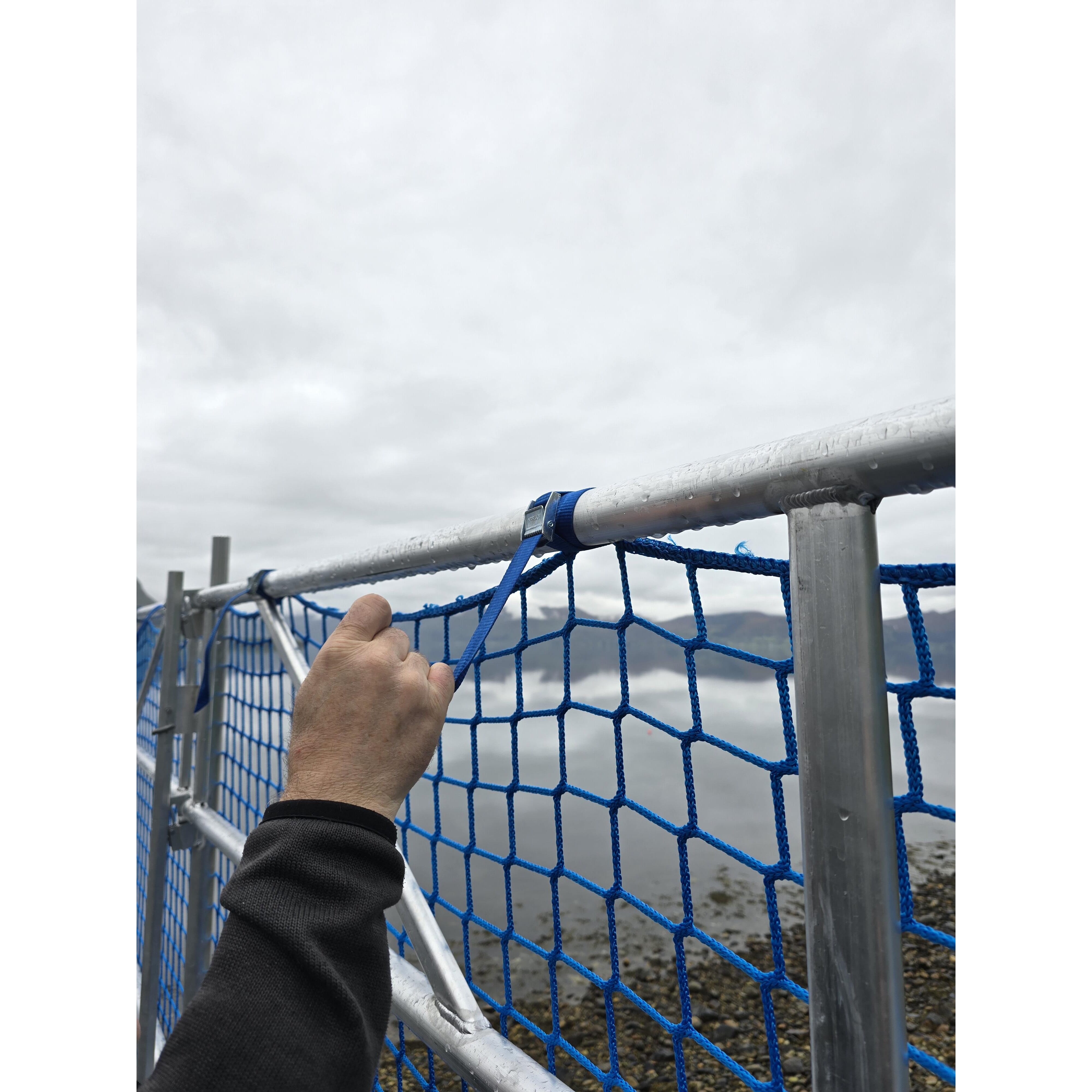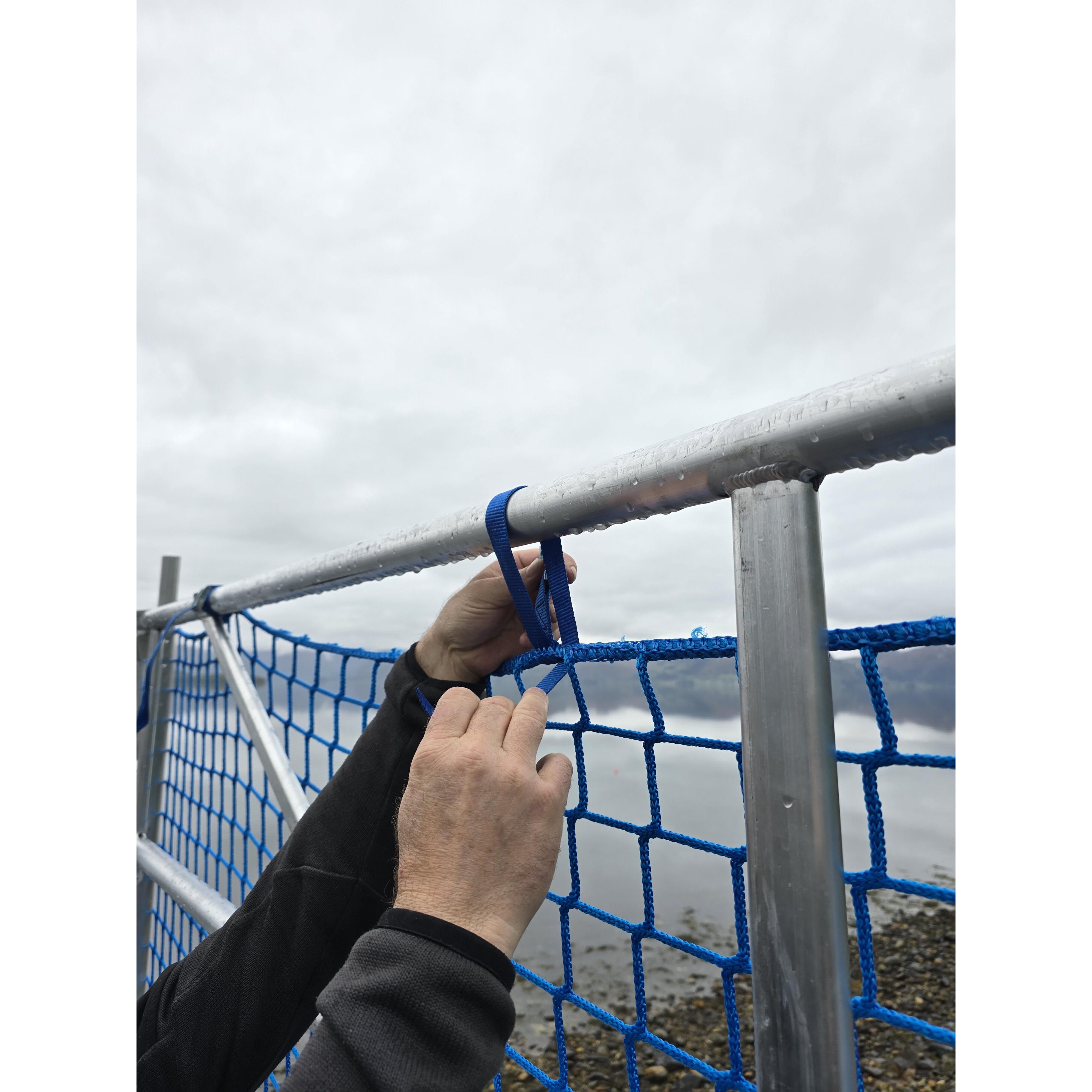 Rør med krokfeste brukes der det er nødvendig å feste nett eller presenning i gulvnivå på stillaset, og er påkrevd ved bruk av fallsikringsnett. Vare nr 310030.