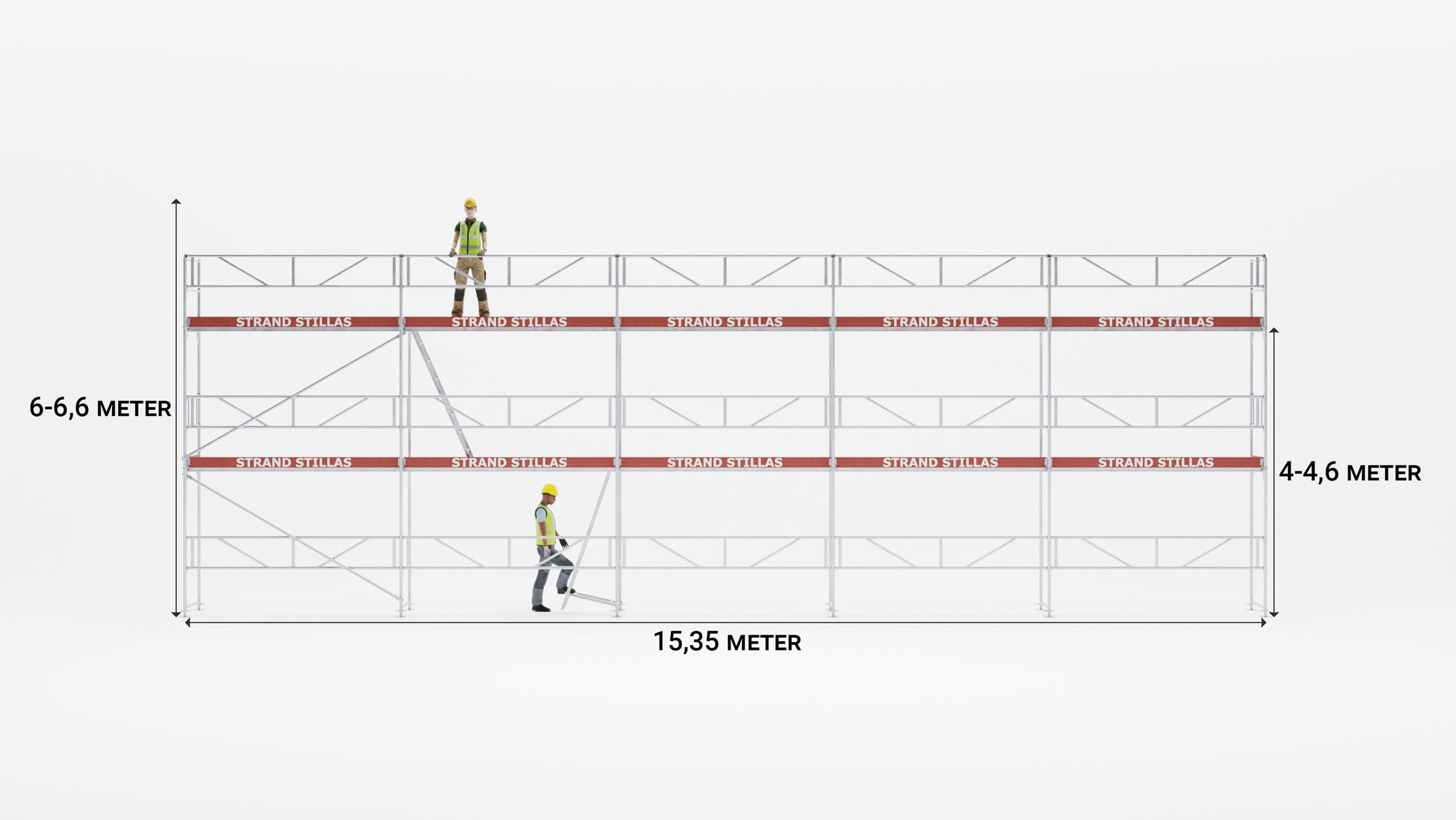 Hengerpakke 25 leveres komplett med alle monteringsdeler som trengs for å bygge stillaset som avbildet. Stillaset kan også bygges en etasje lavere dersom det er ønskelig.