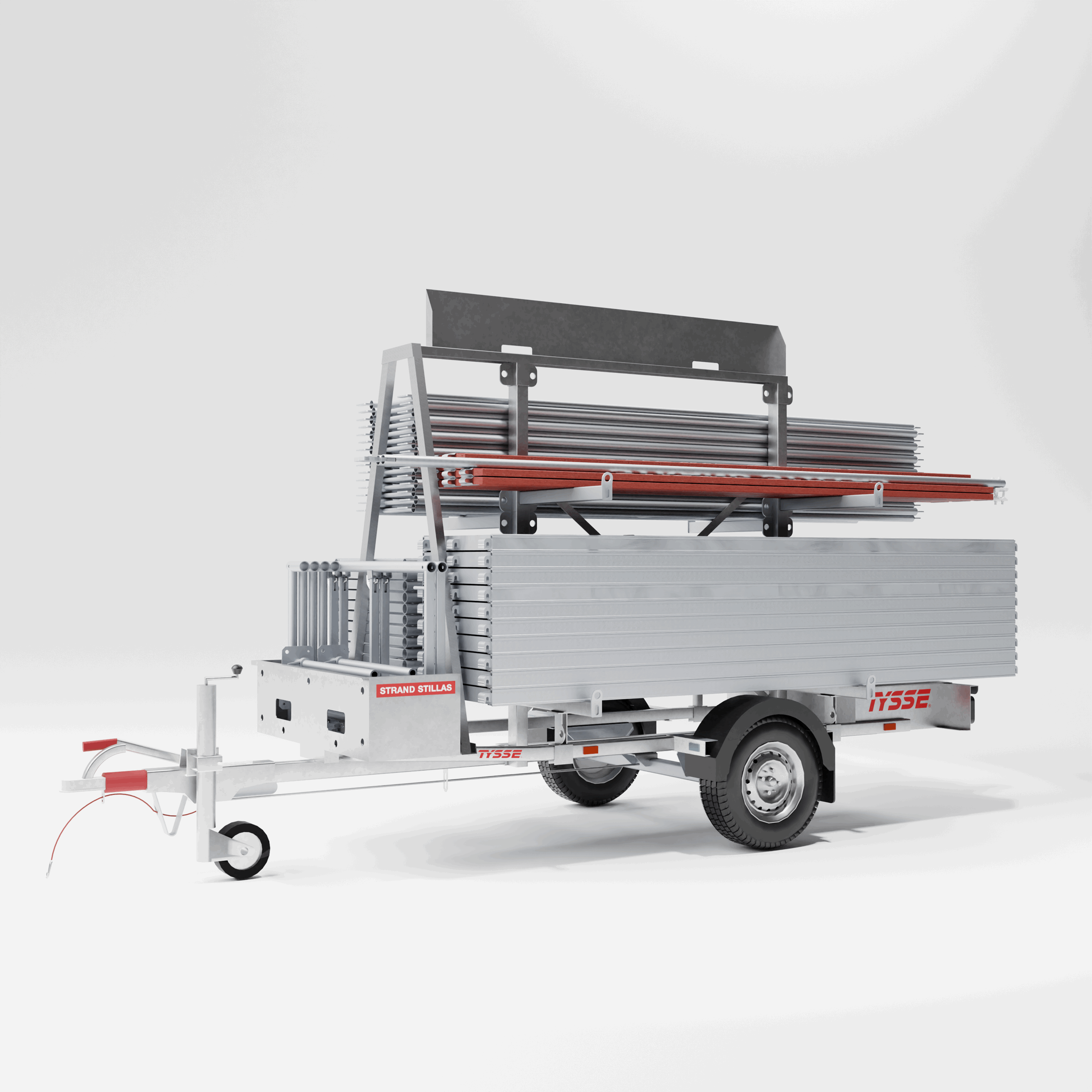 Hovedkomponenter slik som rammer og rekkverk er fremstilt av aluminium, og stillasgulv leveres med lettvekts kompositt.