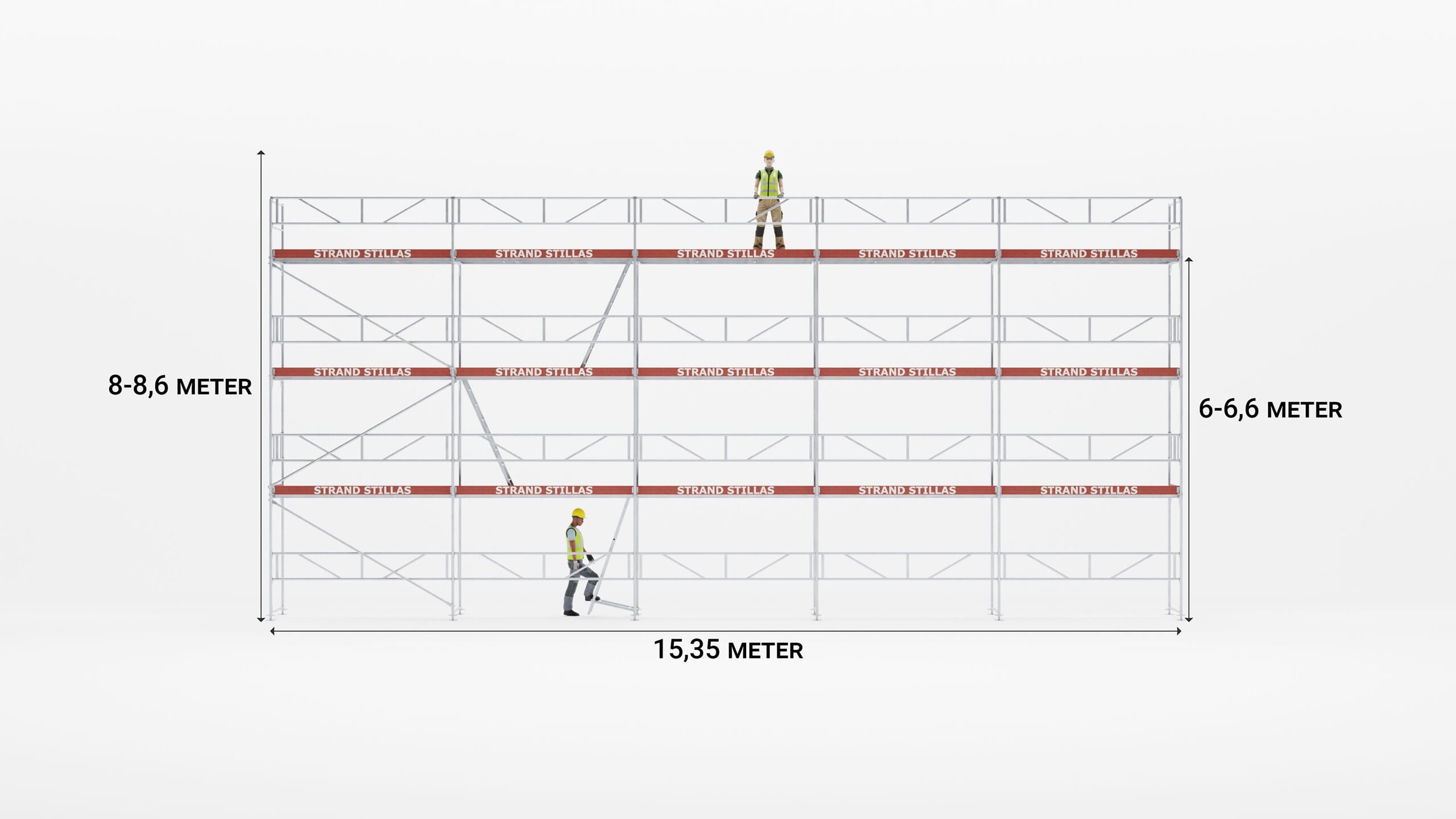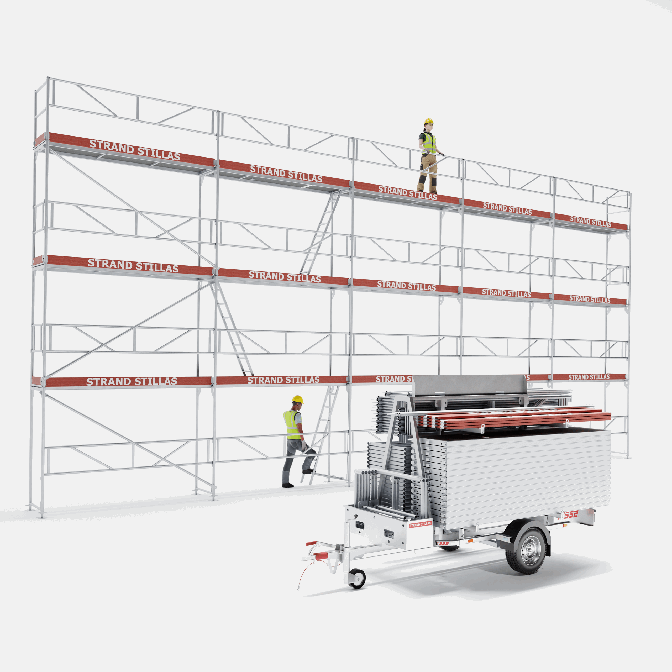 Hengerpakke 35 leveres komplett med alle monteringsdeler som trengs for å bygge stillaset som avbildet i 3 etasjer. Stillaset kan også bygges lavere dersom det er ønskelig.